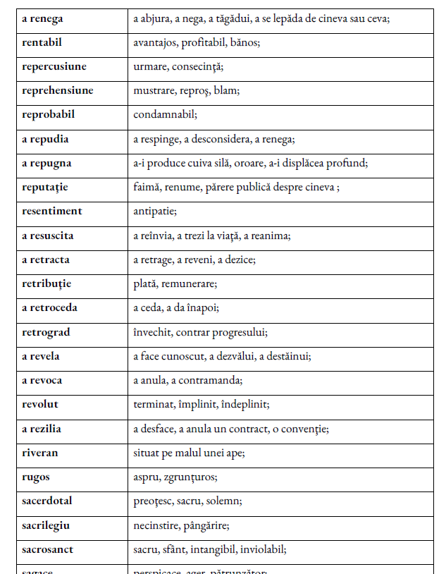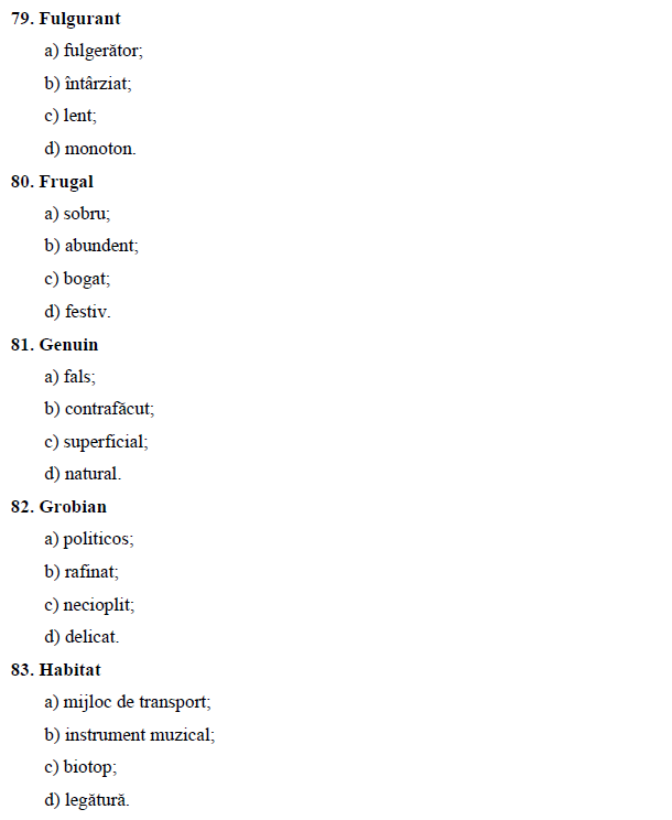 Partea de vocabular este redactată conform DOOM 3, asigurând respectarea normei academice actuale și utilizarea corectă a limbii române în conformitate cu cerințele examenului.